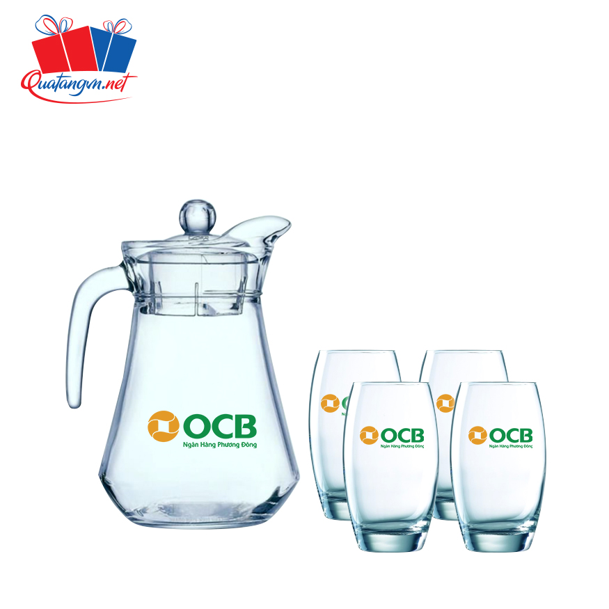Bộ bình cốc thủy tinh in logo đa dạng kiểu dáng