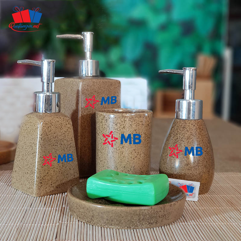 Bộ đồ dùng nhà tắm bằng sứ cao cấp in logo