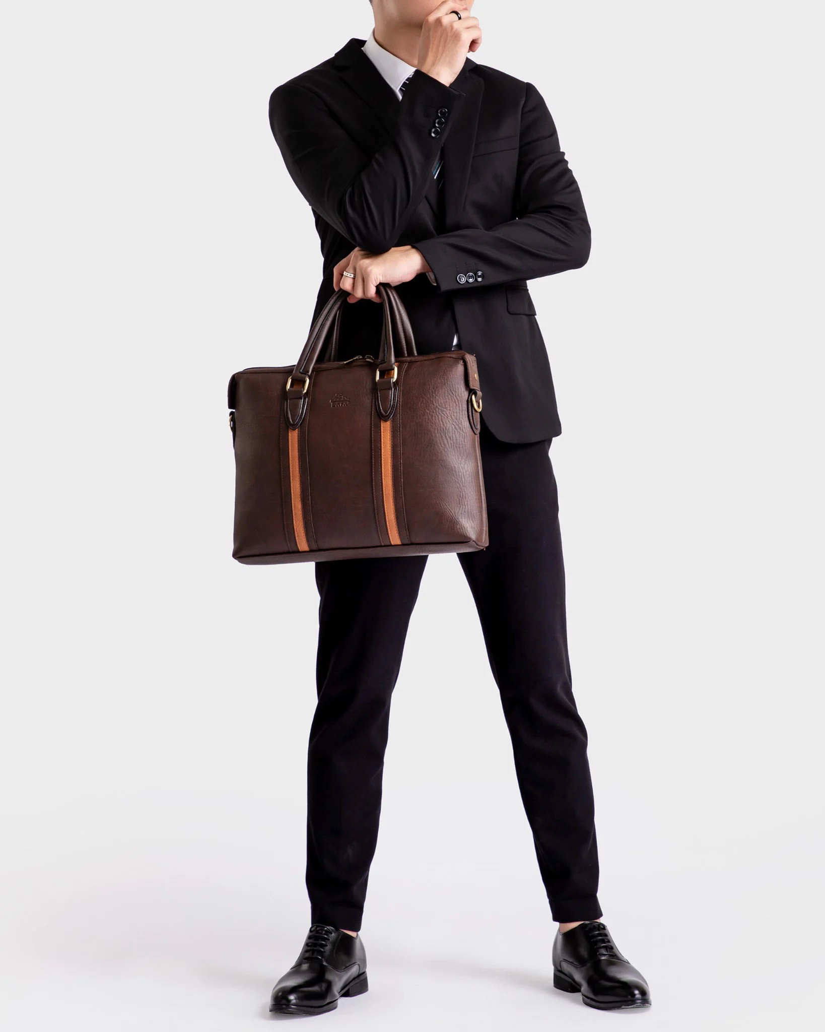 Cặp da công sở CA14N màu nâu có đường chỉ may tỉ mỉ tới từng chi tiết