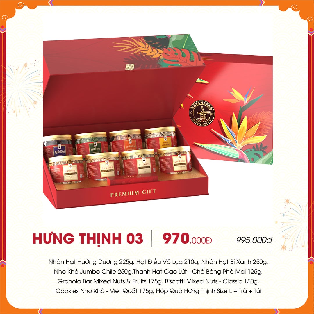 Hộp quà Tết Hưng Thịnh 03 bao gồm: