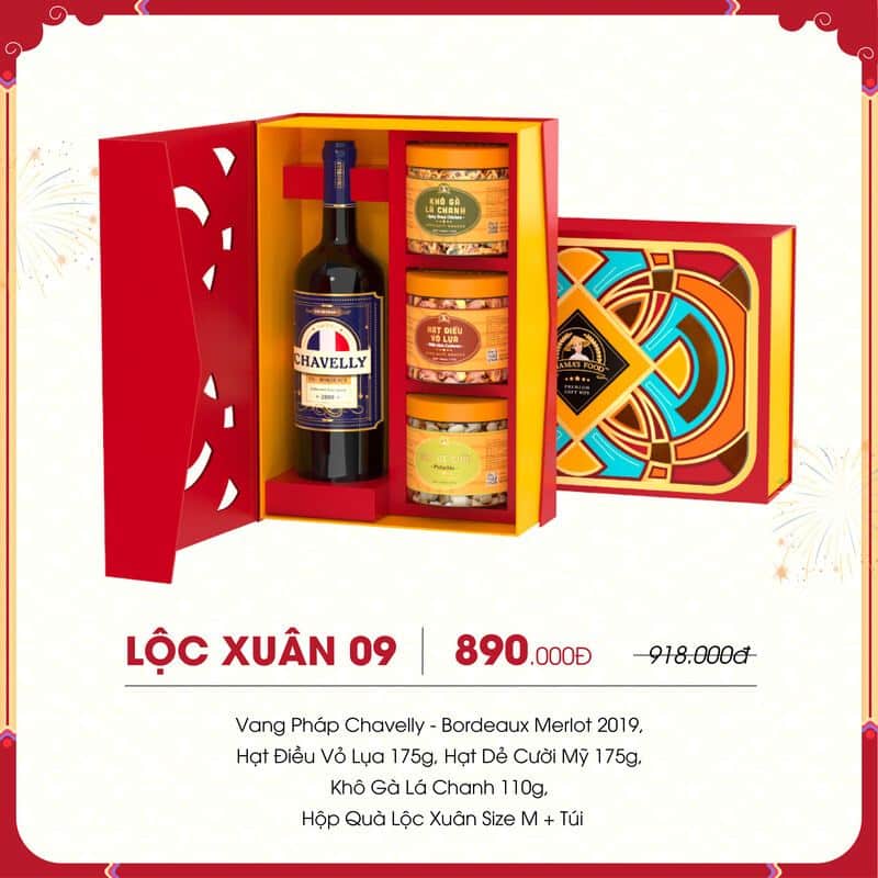 Hộp quà Tết Lộc Xuân 09 bao gồm:
