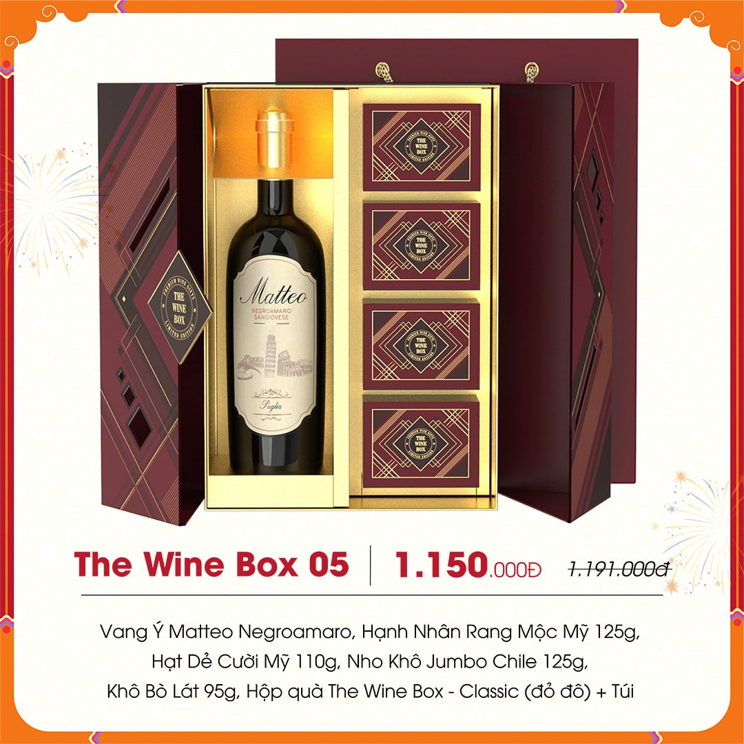 Hộp quà Tết The Wine Box 05 bao gồm: