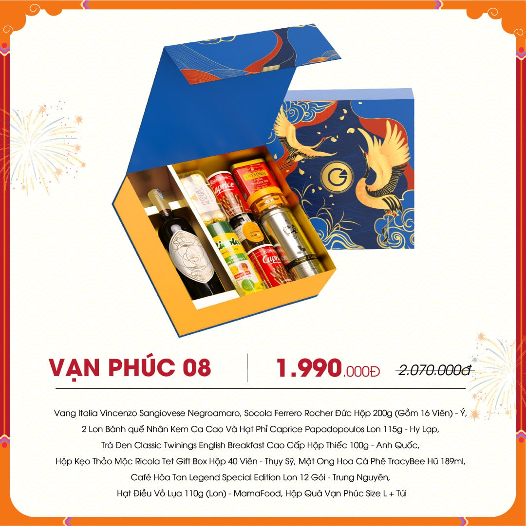 Hộp quà Tết Vạn Phúc 08 bao gồm: