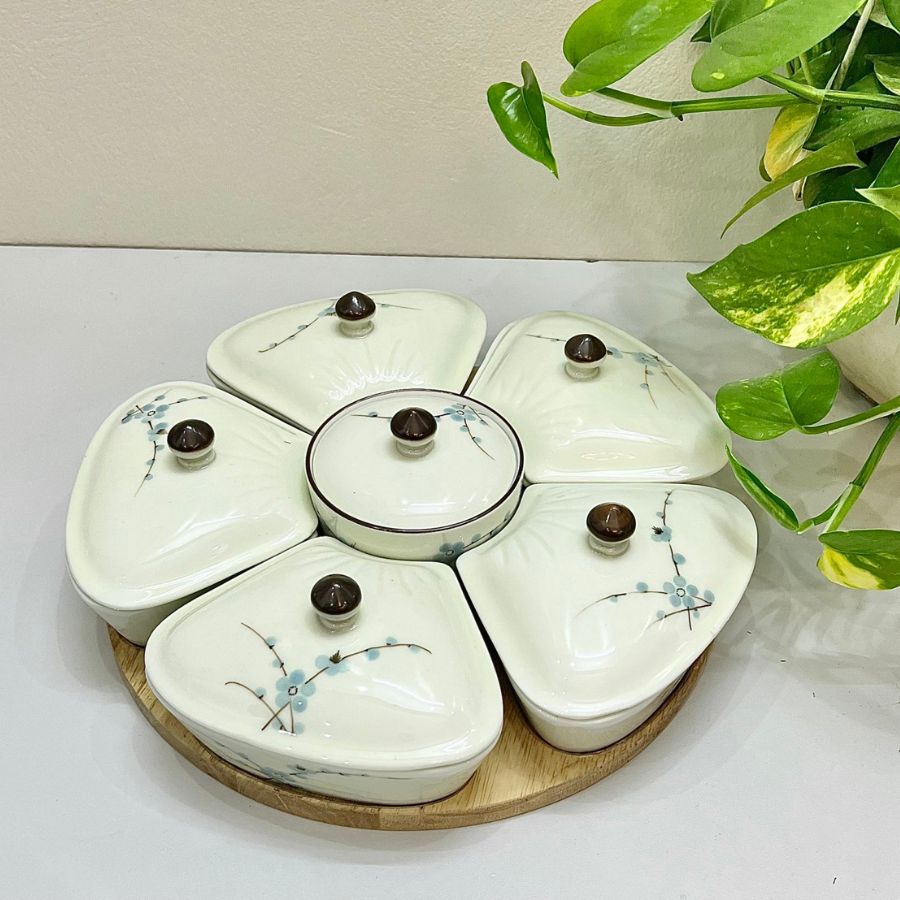 KHAY MỨT SỨ HOA XANH