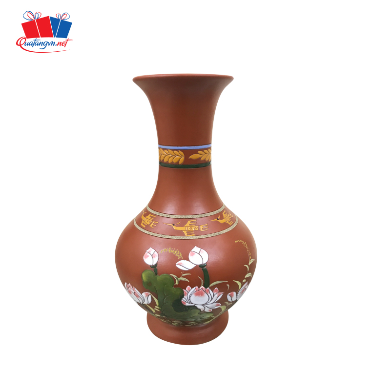 LỌ HOA MIỆNG CAO MÀU NÂU VẼ HỌA TIẾT