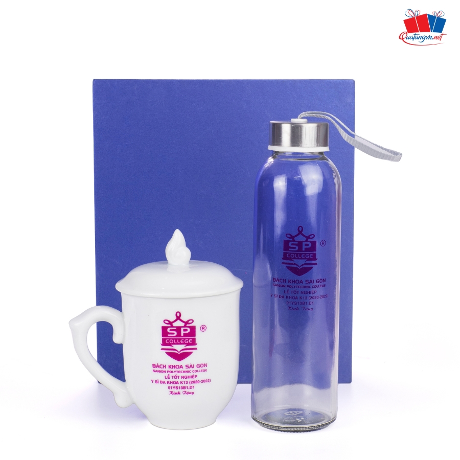 - Set quà tặng bao gồm: 1 ca sứ cao cấp và 1 chai thủy tinh